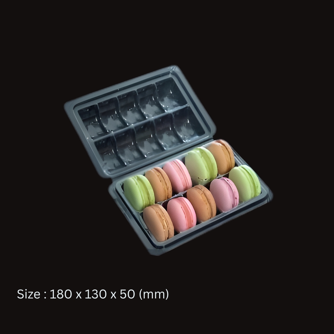 Keep your macarons fresh and beautifully presented with the 10 Cavity PVC Macaron Box. Made from sturdy, transparent PVC, this box securely holds 10 macarons, making it perfect for gifting, display, and takeaway.