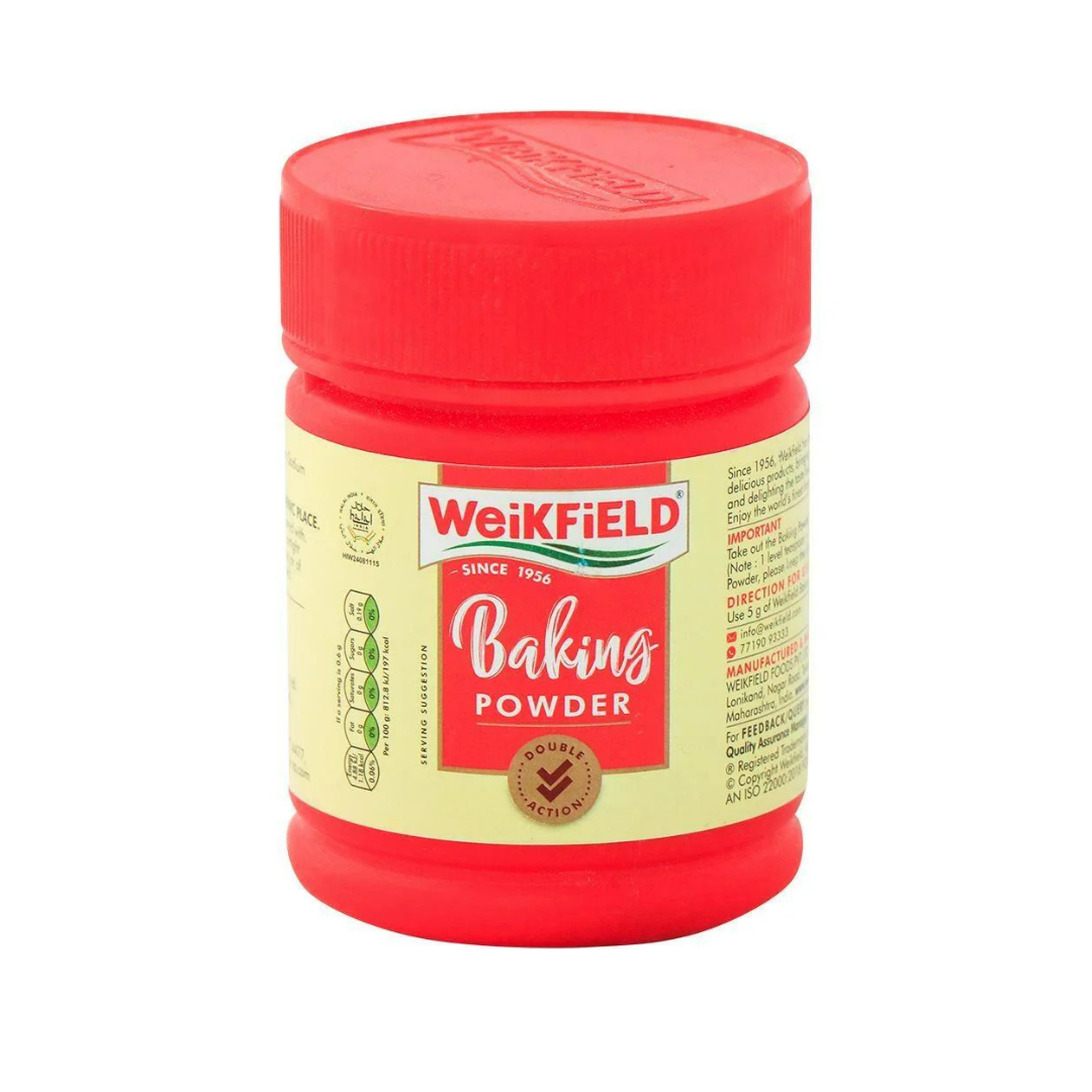 Weikfield Baking Powder is a double-acting, premium-quality leavening agent that ensures your cakes, muffins, and other baked delights rise perfectly every time. Ideal for all types of baking, it provides consistent results with a soft and fluffy texture. Whether you’re baking at home or for a business, Weikfield’s trusted formula helps achieve delicious and professional-quality results.
