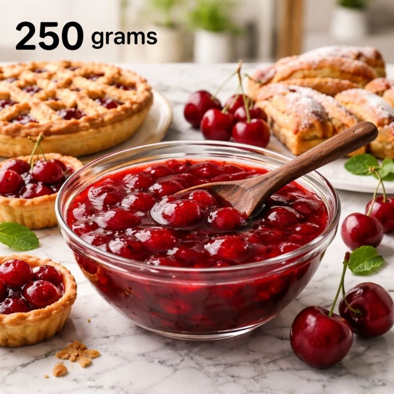 Sweet, tangy, and irresistibly vibrant, our 250g Cherry Fruit Filling brings the bold flavor of ripe cherries straight to your kitchen. Made with juicy, real cherries and a touch of sweetness, this ready-to-use filling is perfect for pies, black forest cakes, cheesecakes, turnovers, and more. Its rich red color and thick, spoonable texture make every dessert look as good as it tastes.