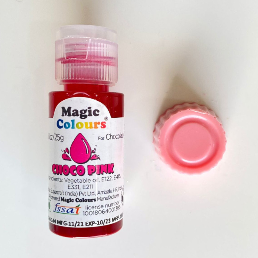Add a sweet, romantic touch to your desserts with Choco Pink 25g Magic. This premium gel-based edible color offers a soft yet vibrant pink hue, perfect for coloring chocolates, fondant, buttercream, and icing with a smooth, even finish.
