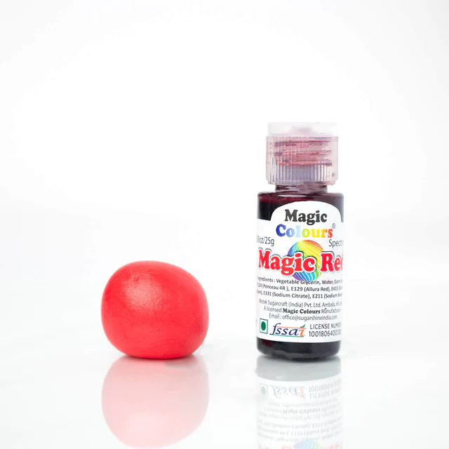 Make your creations pop with the bold and vibrant Magic Colours Magic Red.This glycerine based , gel colour is ideal for use in cream, cake batter, fondant, sugar paste, flower paste etc. Loved by professionals for its smooth finish and high pigment strength.