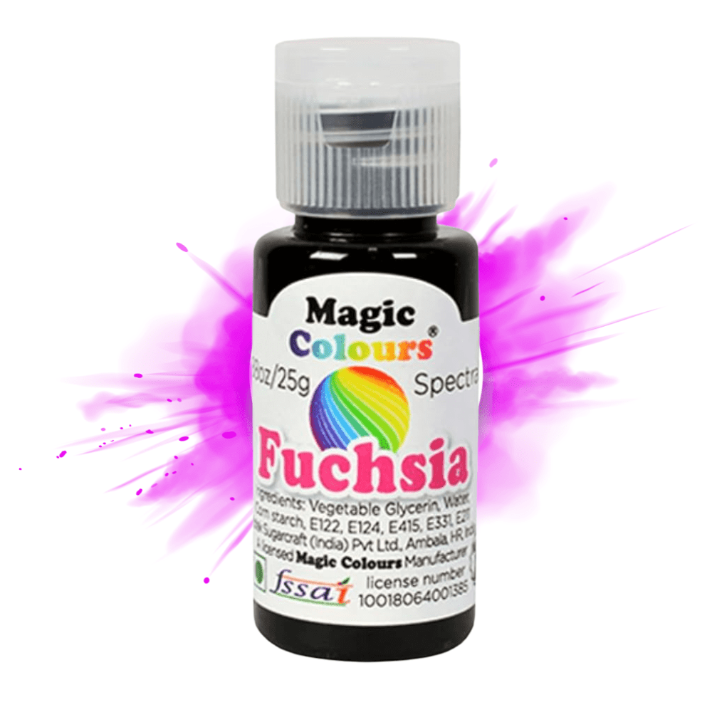Add a bold, vibrant touch to your edible creations with Magic Colours Fuchsia Gel Colour. This glycerine-based gel is perfect for cream, fondant, cake batter, sugar paste, and more. Whether you’re crafting elegant desserts or playful designs, its highly concentrated formula ensures smooth, rich colour with just a small amount.
