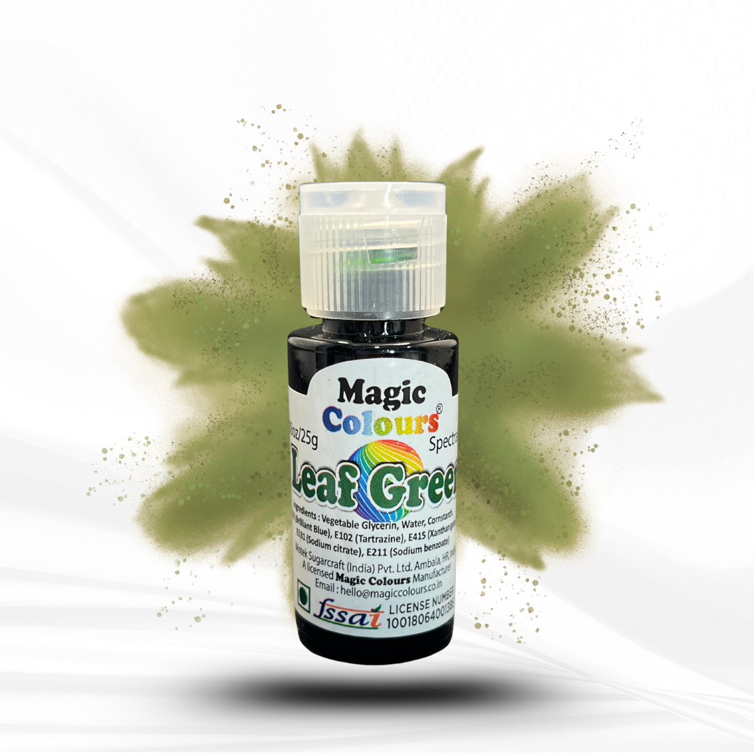 Add a burst of vibrant, fresh color to your edible creations with Magic Colours Radiant Green.This glycerine based , gel colour is ideal for use in cream, cake batter, fondant, sugar paste, flower paste etc. With its high pigment concentration, this color delivers bold, consistent results with minimal use, making it a favorite for professionals and home bakers alike.