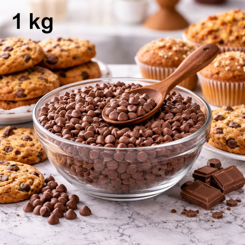 Milk Choco Chips are smooth, melt-in-your-mouth chocolate morsels made with rich, creamy milk chocolate—perfect for cookies, muffins, brownies, and desserts. Available in 100g, 250g, and 1kg packs to suit every need—from home baking to professional kitchens. These choco chips blend easily, bake beautifully, and add a delicious burst of sweetness to every bite.