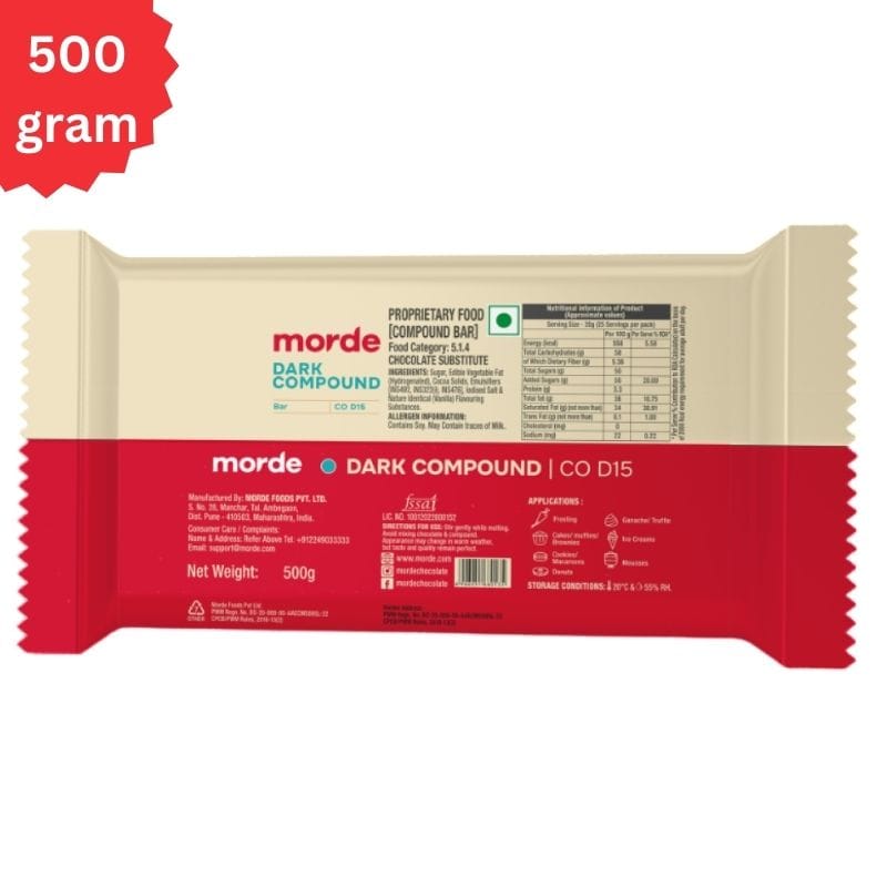 Morde Dark Compound Chocolate is a dark compound from Morde that contains cocoa solids and sugar.