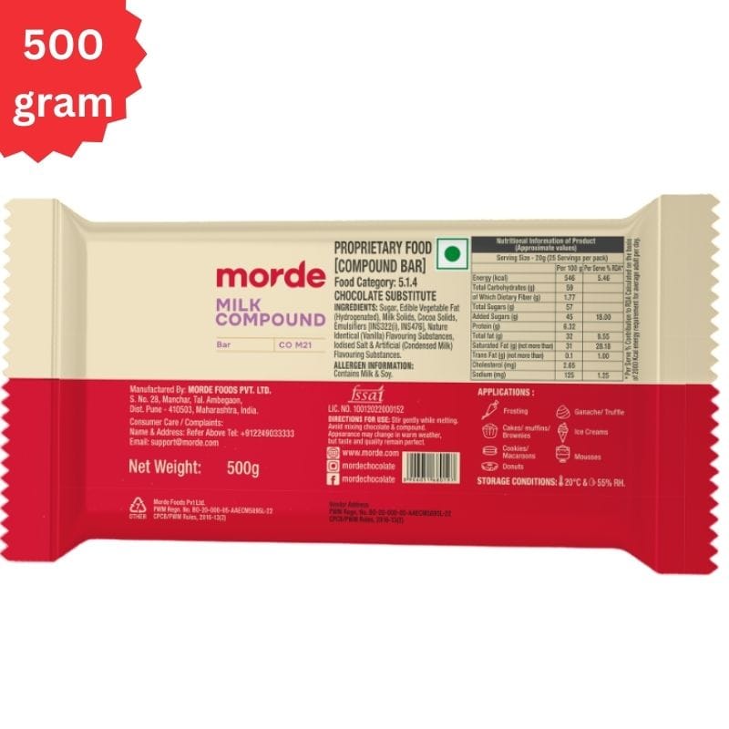Please Note that this is 500 Grams Milk Compound (not 400 Grams) Made by: Morde Foods Pvt. Ltd.