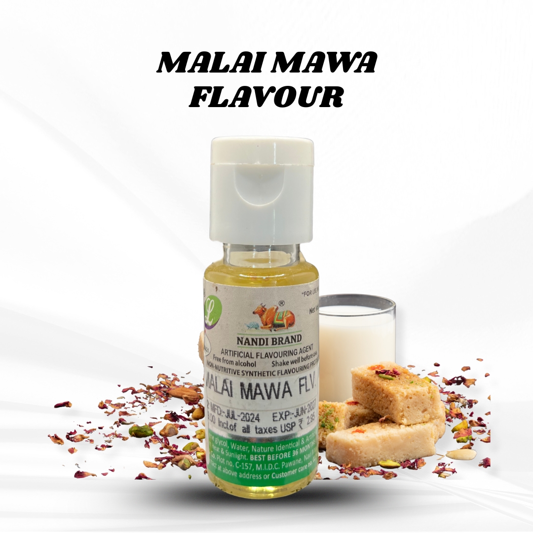Nandi Mava Malai Essence captures the rich, creamy taste of traditional Indian mava (khoya) and malai (clotted cream) in a concentrated flavoring. Perfect for enhancing the taste of Indian sweets like peda, barfi, rasmalai, kulfi, and fusion desserts. Just a few drops add a deliciously milky, indulgent aroma and taste that elevates both home-cooked and professional recipes.