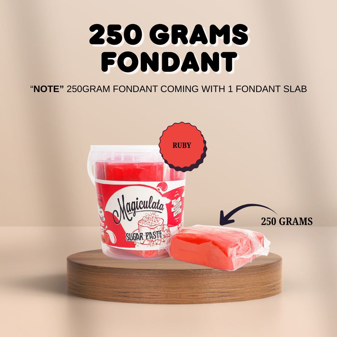 Magic Sugar Paste in Ruby brings a soft, calming shade that adds elegance and charm to any cake design. Ideal for weddings, baby showers, or spring-themed cakes, this fondant provides a smooth and flawless finish. Its pliable texture ensures easy rolling, molding, and shaping, making it perfect for both beginners and professional decorators to create stunning sugar flowers, decorations, and more.