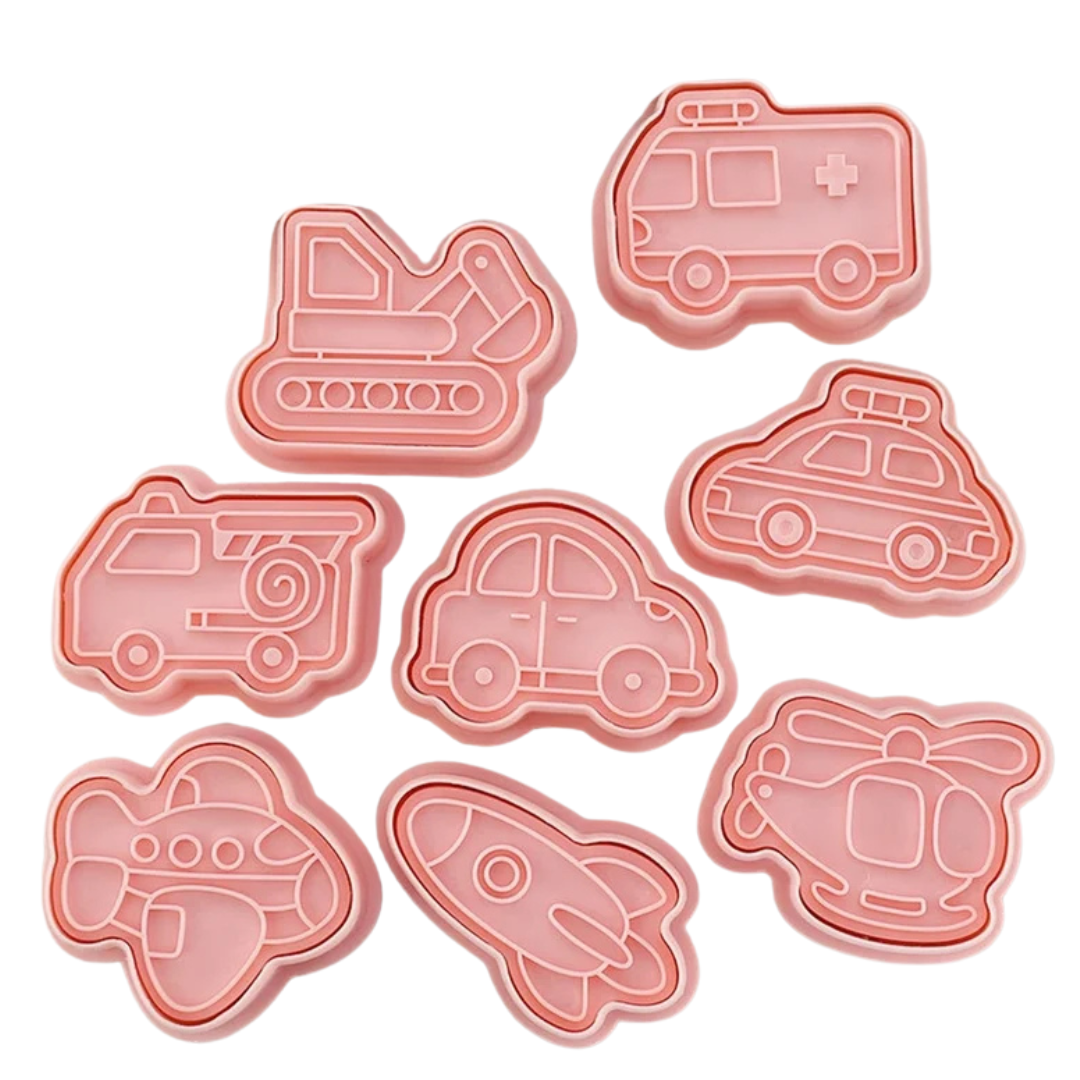 Zoom into creativity with the Vehicle Cutter 8 in 1 Set—a fun collection of transportation-themed cutters perfect for cookies, fondant, playdough, or crafting. This set features 8 unique vehicle shapes, including a car, truck, airplane, train, boat, bus, helicopter, and motorcycle—great for birthday parties, school activities, or everyday fun. Made from durable, food-safe materials and easy to use, these cutters help bring your little one’s favorite rides to life in the kitchen or craft room.